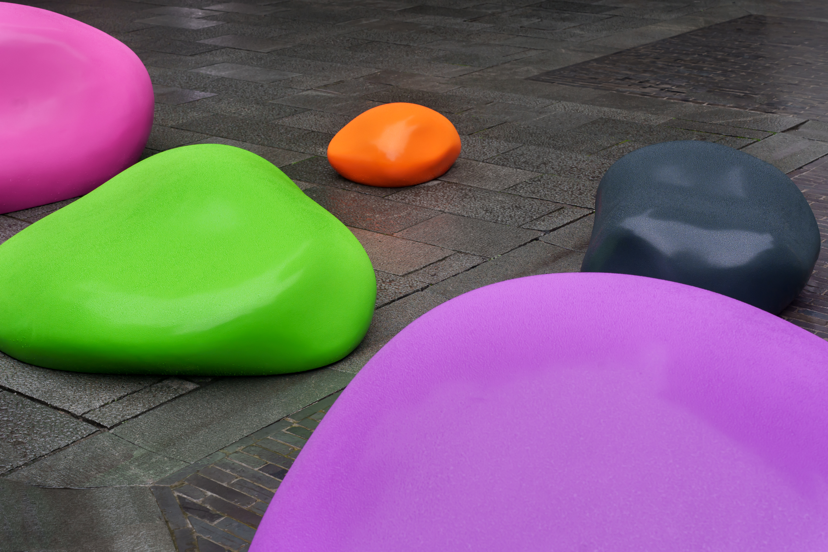 高露迪,《拥抱》 2022,玻璃钢,镀锌铁,喷漆,尺寸可变