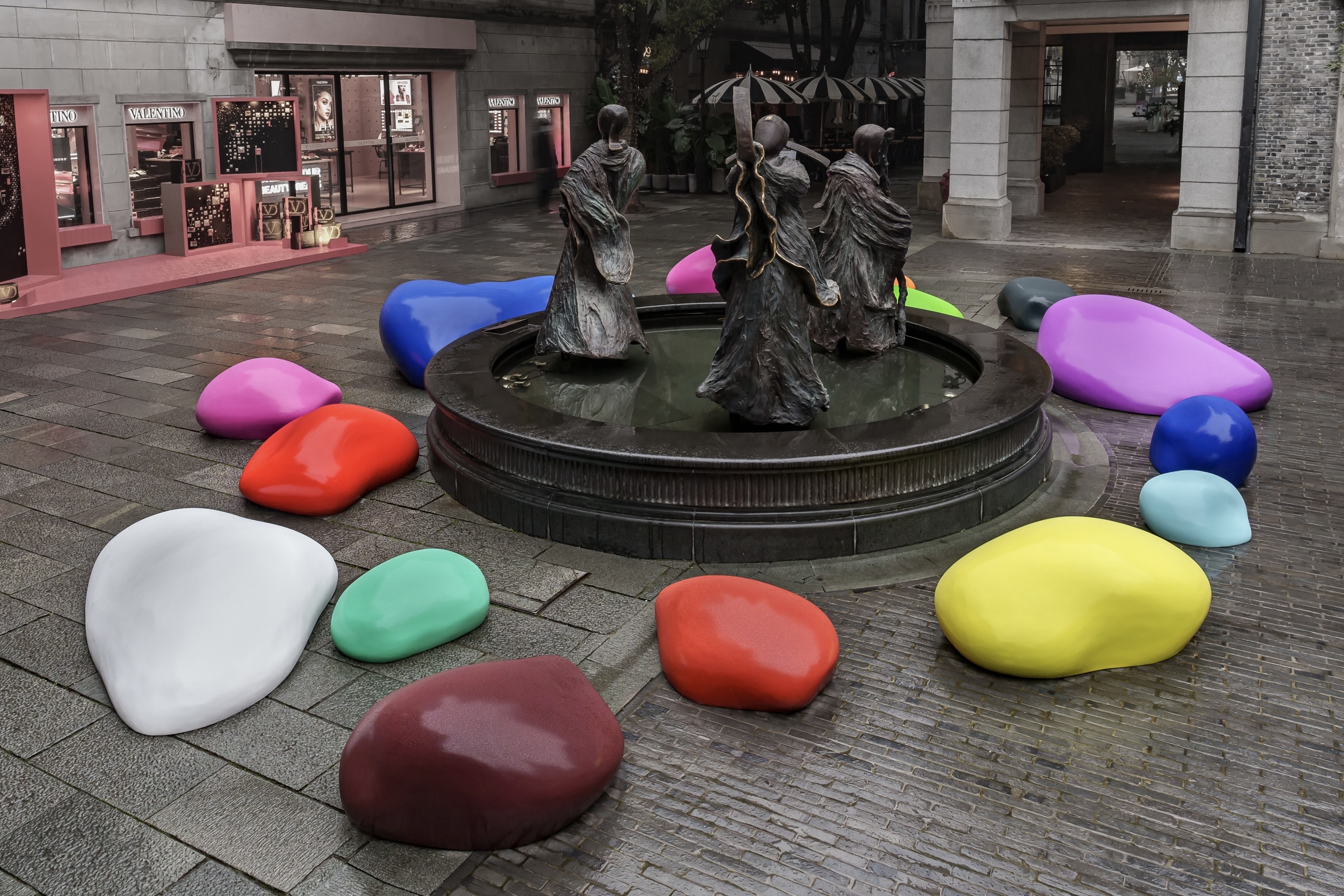 艺术家高露迪的灵感来源于他经常使用的颜料色块,将新天地视为上海城市的调色盘,新天地作核心腹地是引领都市潮流与市民文化的发源地与中转站,为上海带来独特的流动色彩。高露迪在福禄寿广场采用鲜艳的色块将喷泉及窗户变为创作的界面,艺术家抽取其日常绘画中过渡色彩的形式,让曲线边缘如细胞一样有机地蔓延于喷泉周围。而在广场的窗户上,艺术家采用彩色镜面反射材质,令广场中来往的人、热闹的情景、天空与彩色圆环形成交融的流动光影。艺术家希望通过这组空间色彩装置,为来往人群带去片刻温暖欢乐,同时也以这种方式拥抱在此与作品相遇的每个人。