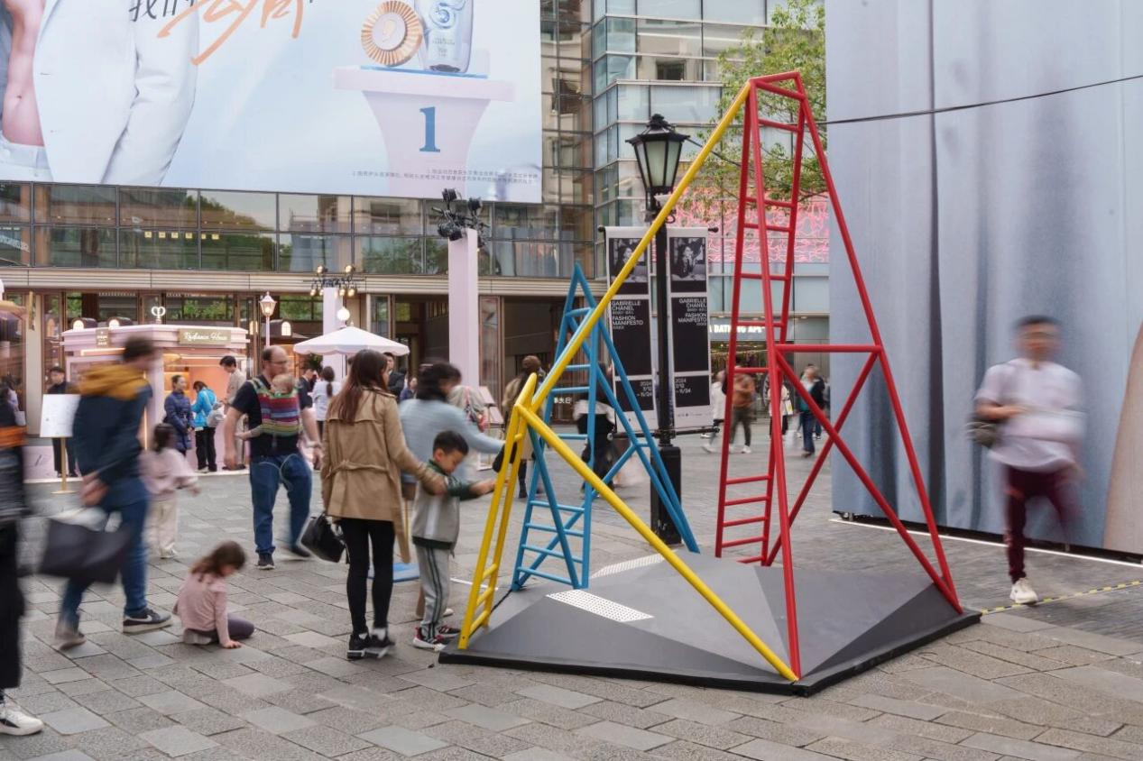 《都市心声 × 梯峰》将空间登高装置与声音交互体验相融合,在城市公共空间中鼓励参与者调动自己的身体,通过行动和听觉来强化具身感知。装置以阶梯构型成峰,构建出一种抽象的登高意指。整个装置分为三种不同高度,并用不同颜色加以区分,同时还装备有心率感应设备,以捕捉观众的心跳速度与节律。在体验过程中,观众的心率表征被实时转化为具有音乐性的节奏声部,将个体内在的声音转换成音乐性的声响,并将之投放至都市公共空间中。作品在兼具趣味与游戏性的同时,也在暗示着个体总是处于主体间性之中的。个体与群体之间这种复杂而有机的关系,亦是都市生活的一大特征。